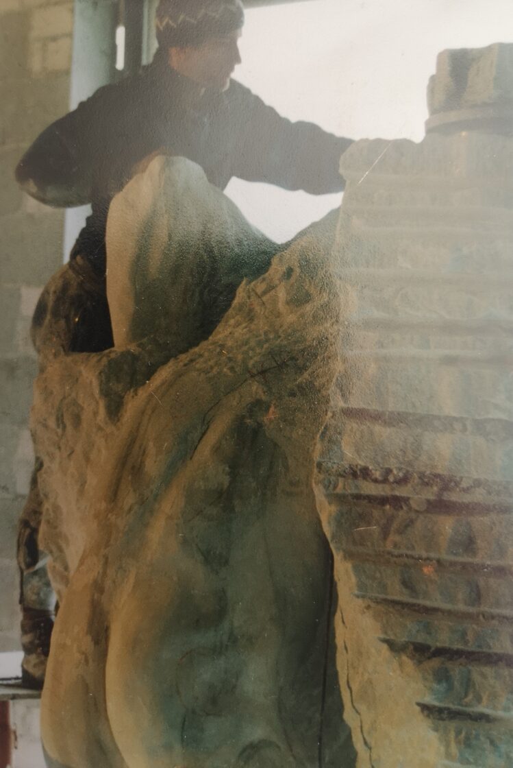 Atelier Amsoldingen / Arbeit an Alabasterskulptur HOC ANNO